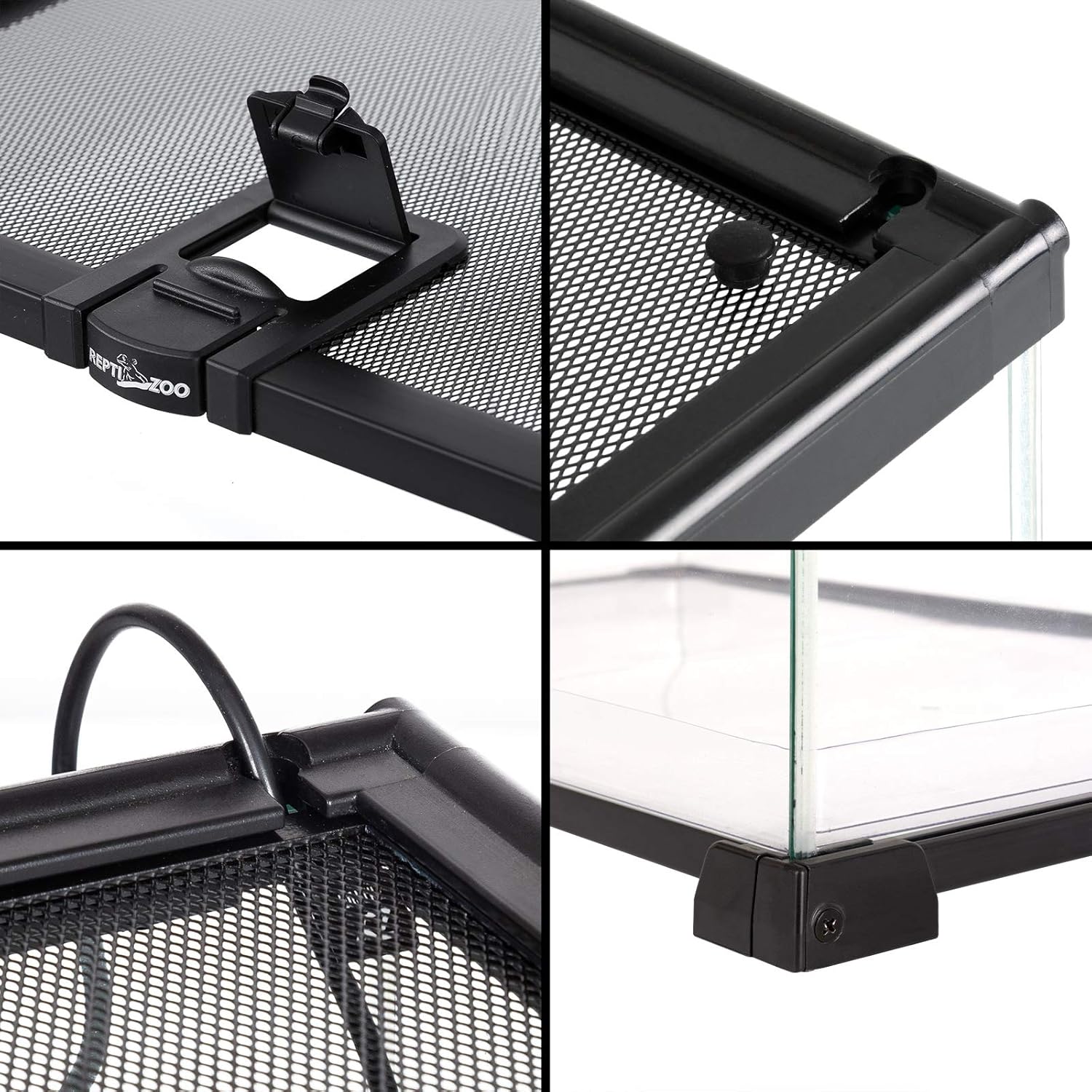 - ăAnti EscapeăSecurity buckle on the lid ensure the tank closed tightly, prevent your reptile amphibian chameleon pets from escaping. And the security lock avoid the doors open accidently by your kids and keep your kids safe.