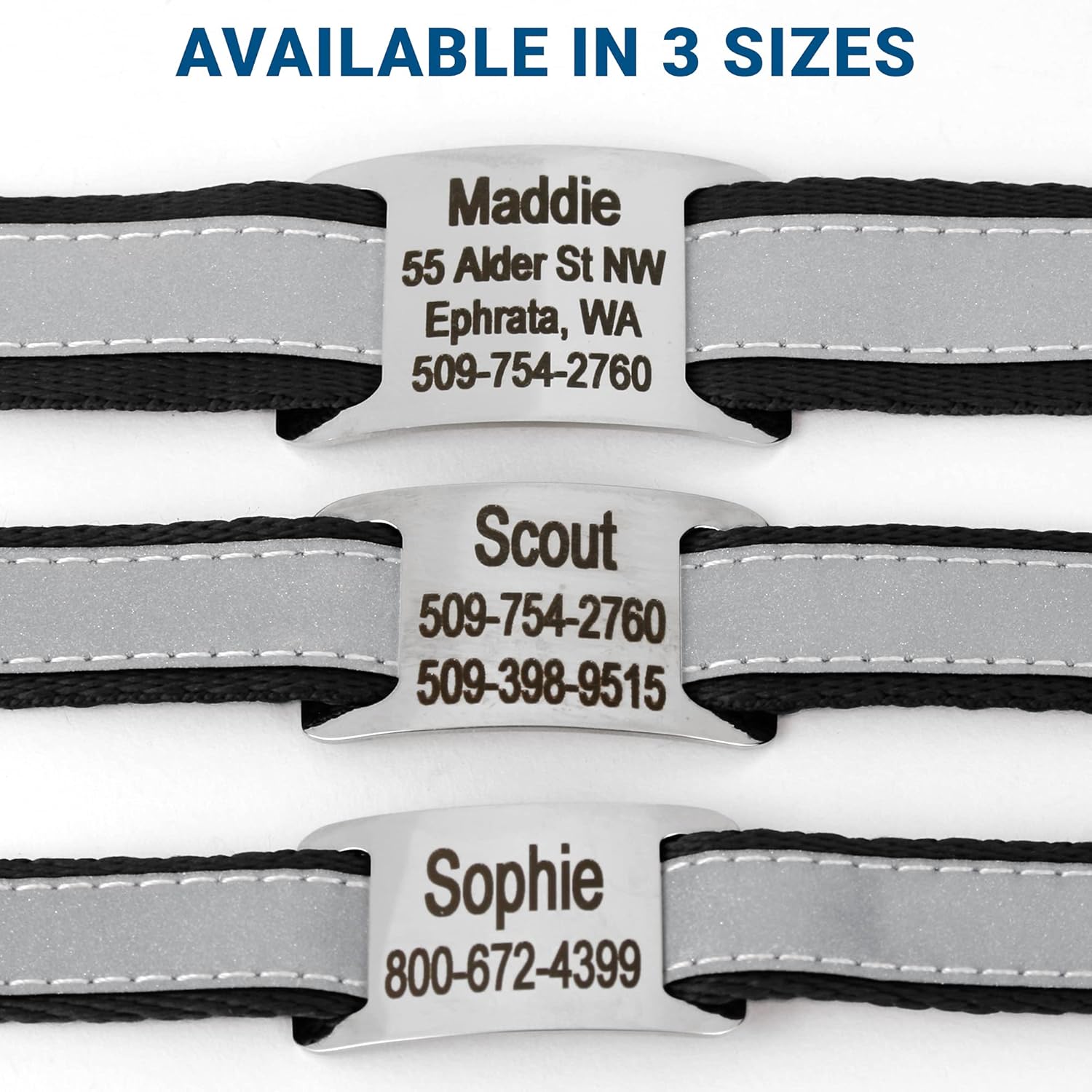 GoTags Reflective Personalized Dog Collar with Nameplate, Adjustable Dog Collar with Custom Engraved Steel Slide On Pet ID Tag, Silent, No Noise Dog Tag for Large Medium or Small (Black, Small)