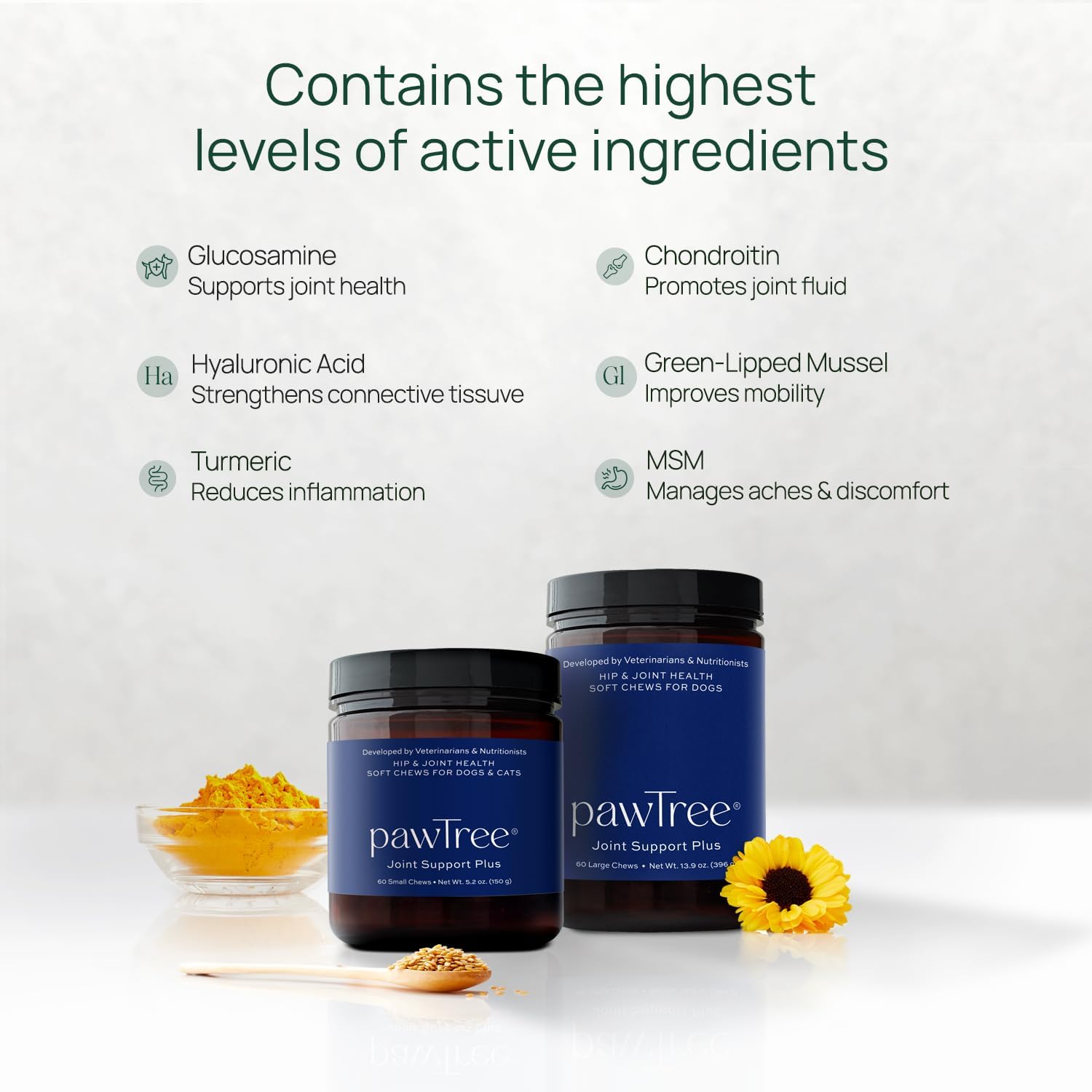 pawTree Joint & Hip Support Supplement for Dogs with Glucosamine, Chondroitin, MSM, Tumeric & Green Lipped Mussels - Vitamins, Supplements & Health Essentials - All-Natural Mobility Soft Chews