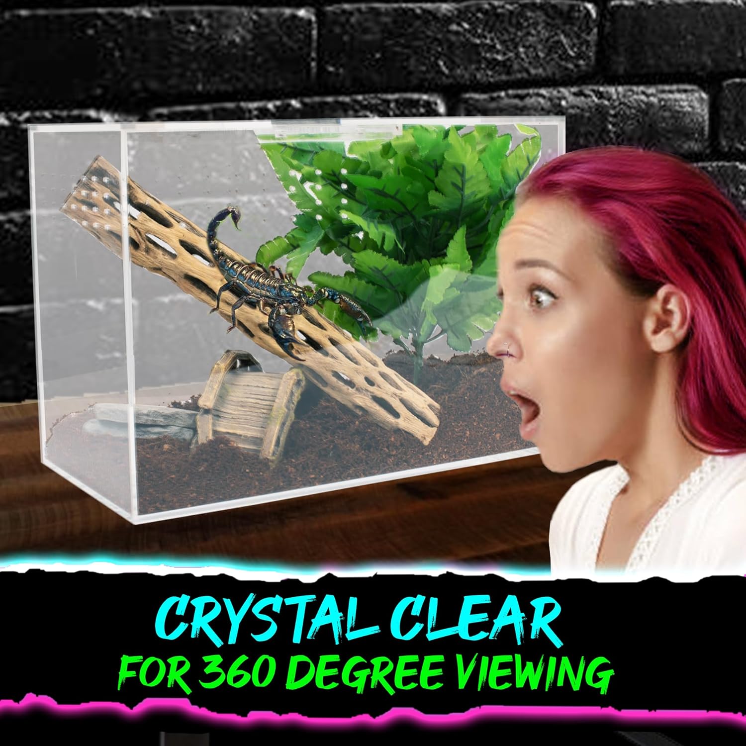 - Acrylic Reptile Enclosure: Our terrariums are a crystal clear acrylic box made for 360 degree viewing, offering 5mm thick acrylic walls, making them sturdy. These reptile tanks come equipped with a 7” sliding magnetic door and a 3” handle for easy handling along with 3mm holes for ventilation and air circulation.