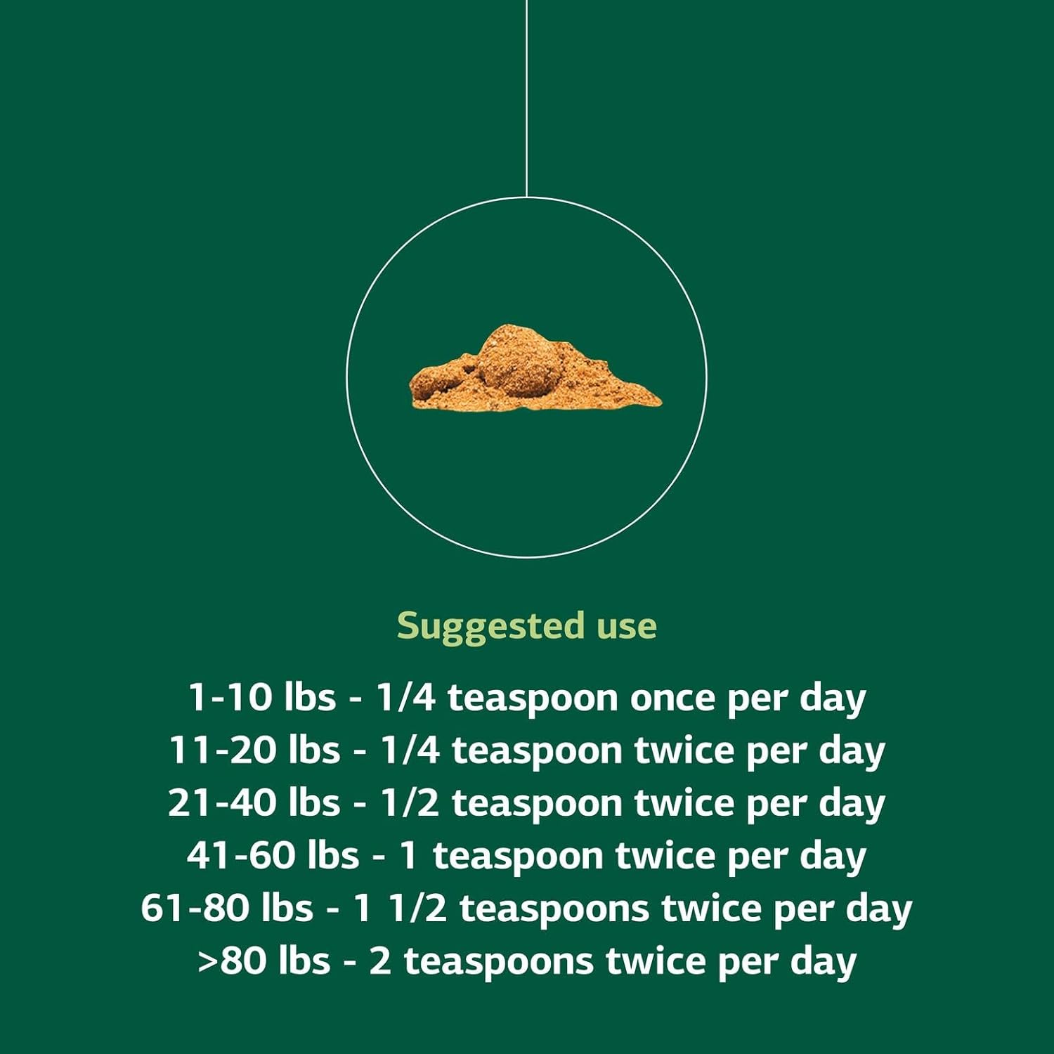 - Supplement Measurement & Dosing: Includes a 1/8 teaspoon scoop for small bottles and a 1/2 teaspoon scoop for large bottles for an accurate dosage based on your dog's weight