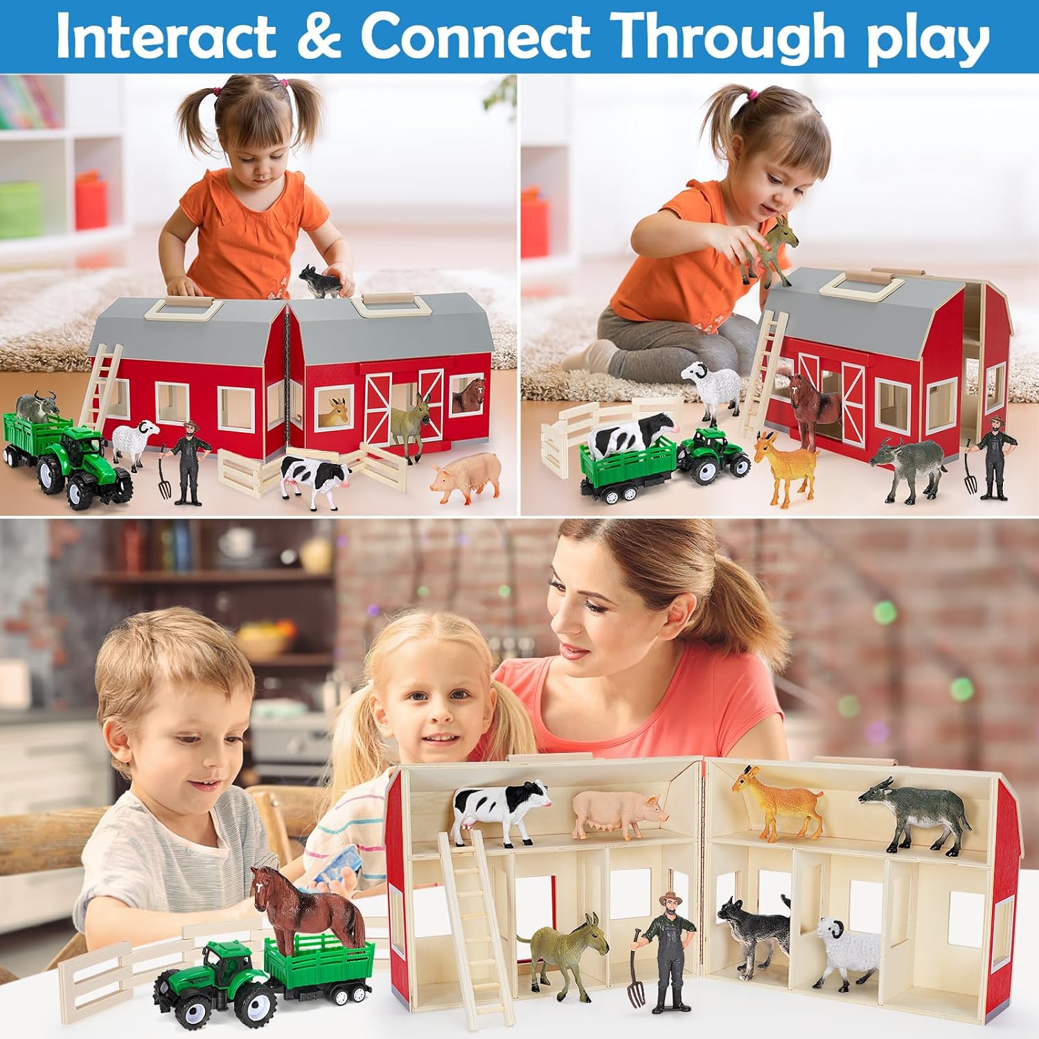 • Fun & Educational Farm Playset: Package includes 1 wooden portable red barn, 10 farm play figurines, 1 wooden ladder, and 1 folding corral. These farm animals with realistic and cute designs are perfect for screen-free play and for introducing preschool kids ages 3 years to animal facts. Great for parent-child interaction and kindergarten preschool learning activities.