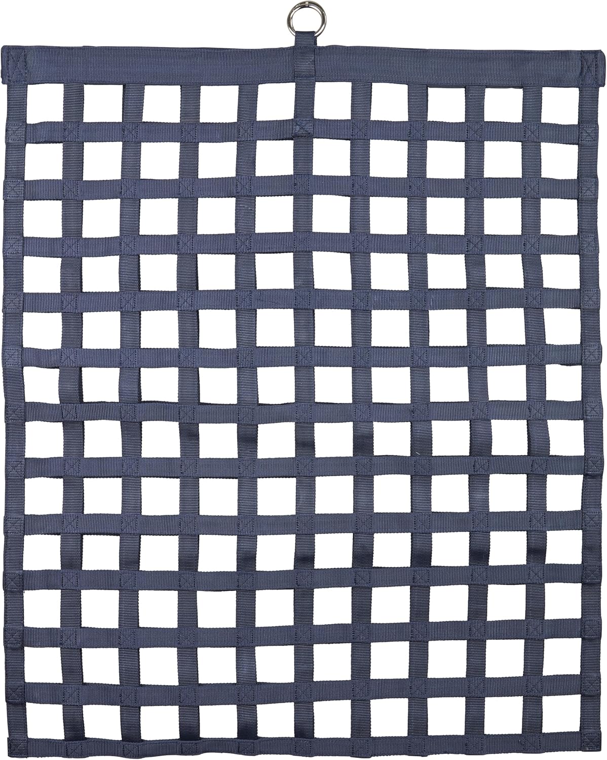 SmartEquine Slow Feed Hay Bag for Horses | Hay Feeder Net with Resistant Nylon | Gator Mouth Enclosure for Easy Loading | Fits 10-15 lbs of Hay | 4 Flakes Bag | 37" x 30" | Navy Blue | 2" Holes
