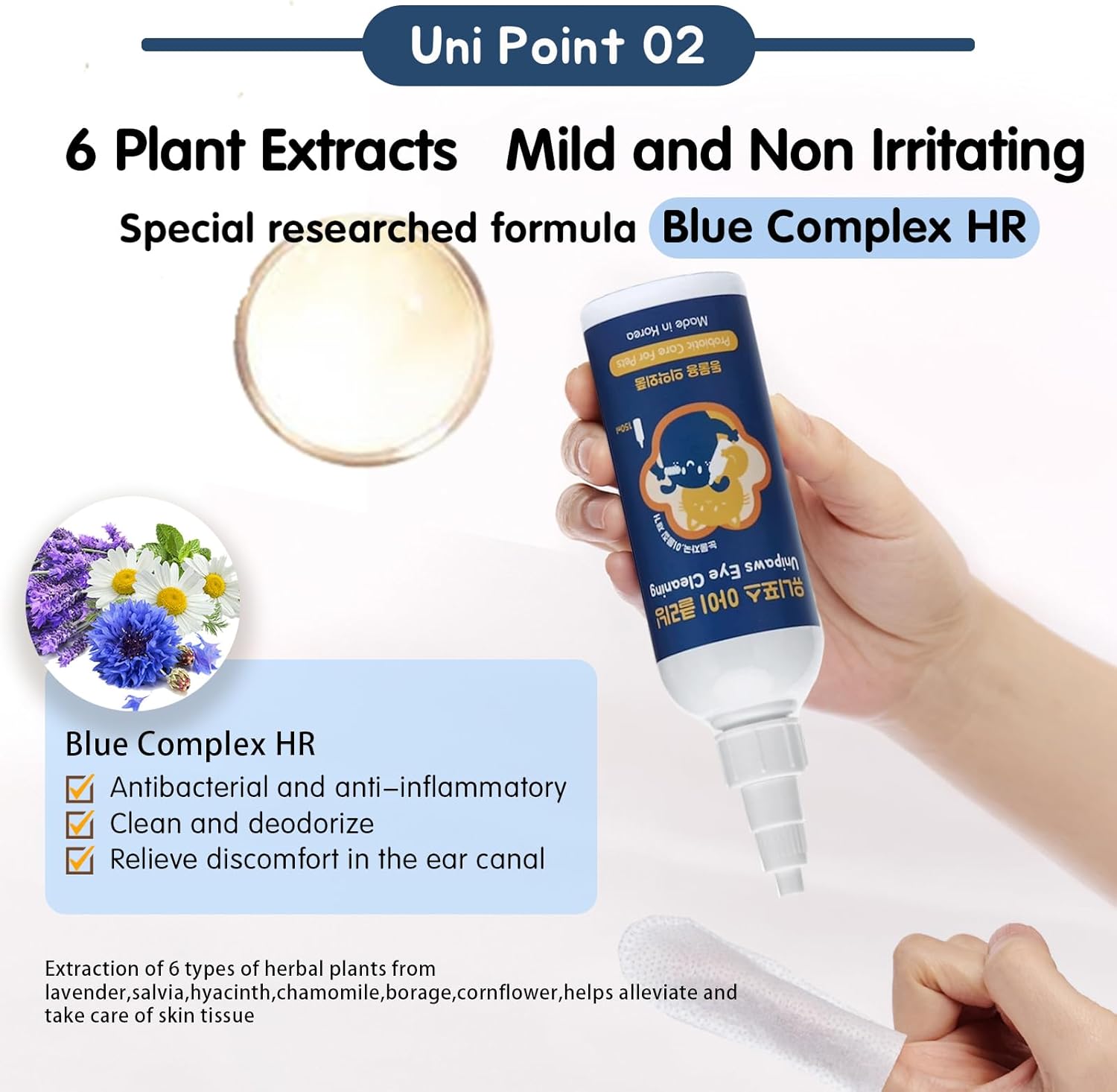 UNIPAWS Dog & Cat Eye Area Cleaner with Wipes – Vet-Recommended Tear Stain Remover – 5.1 fl oz Cleaner + 50 Dry Finger Wipes – Probiotic & Plant Formula, Gentle Grooming Care