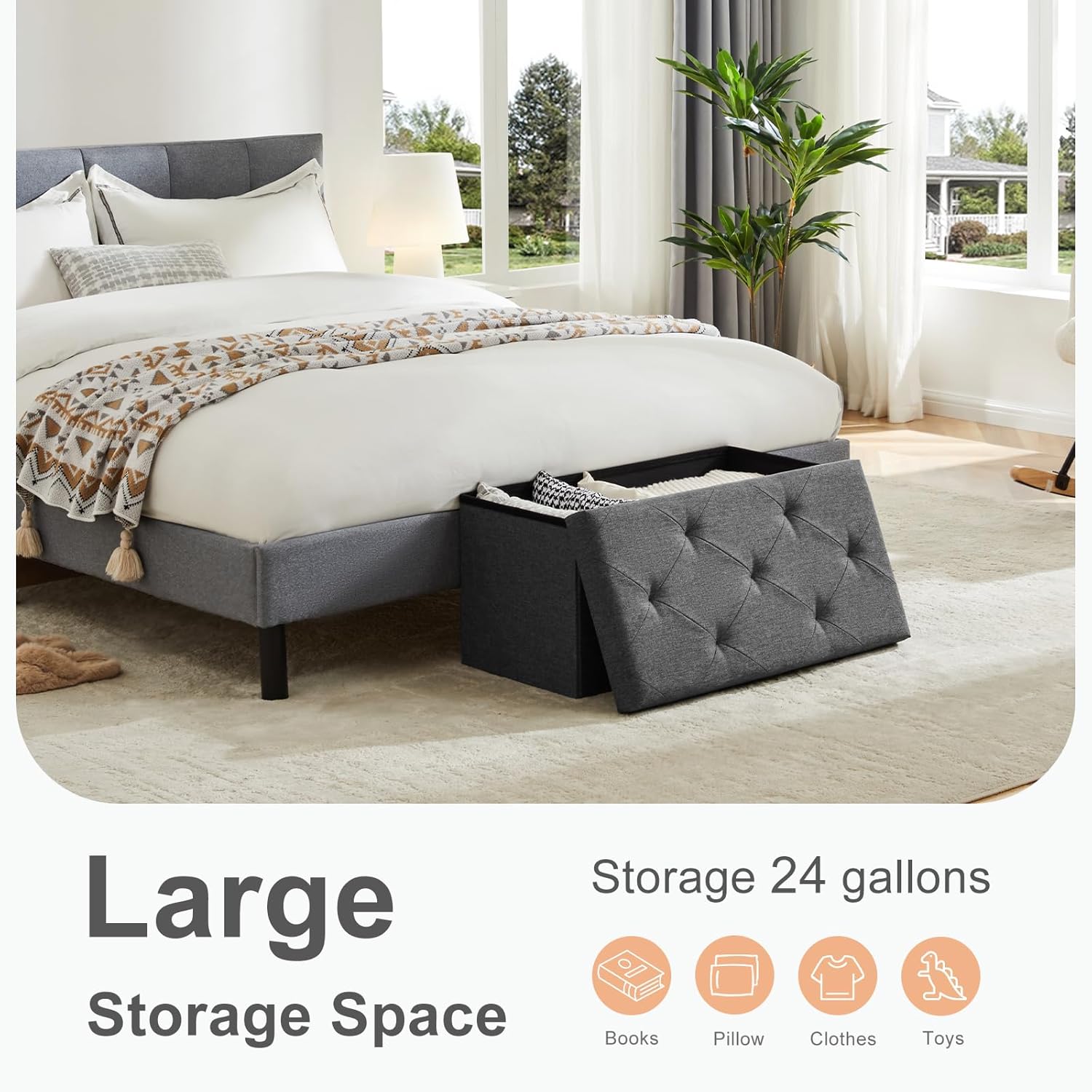 • 【Comfortable and Durable】The storage bench is made of high-quality linen fabric, the fabric is comfortable and breathable, and the feel is full and soft. The interior is filled with high-density foam to maintain good support while ensuring comfort. Strong and durable, so that your comfort experience lasting.