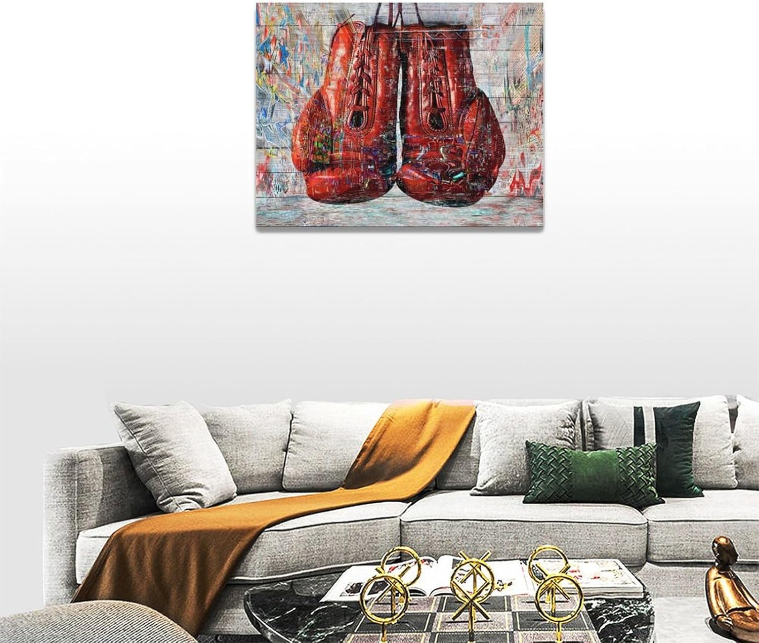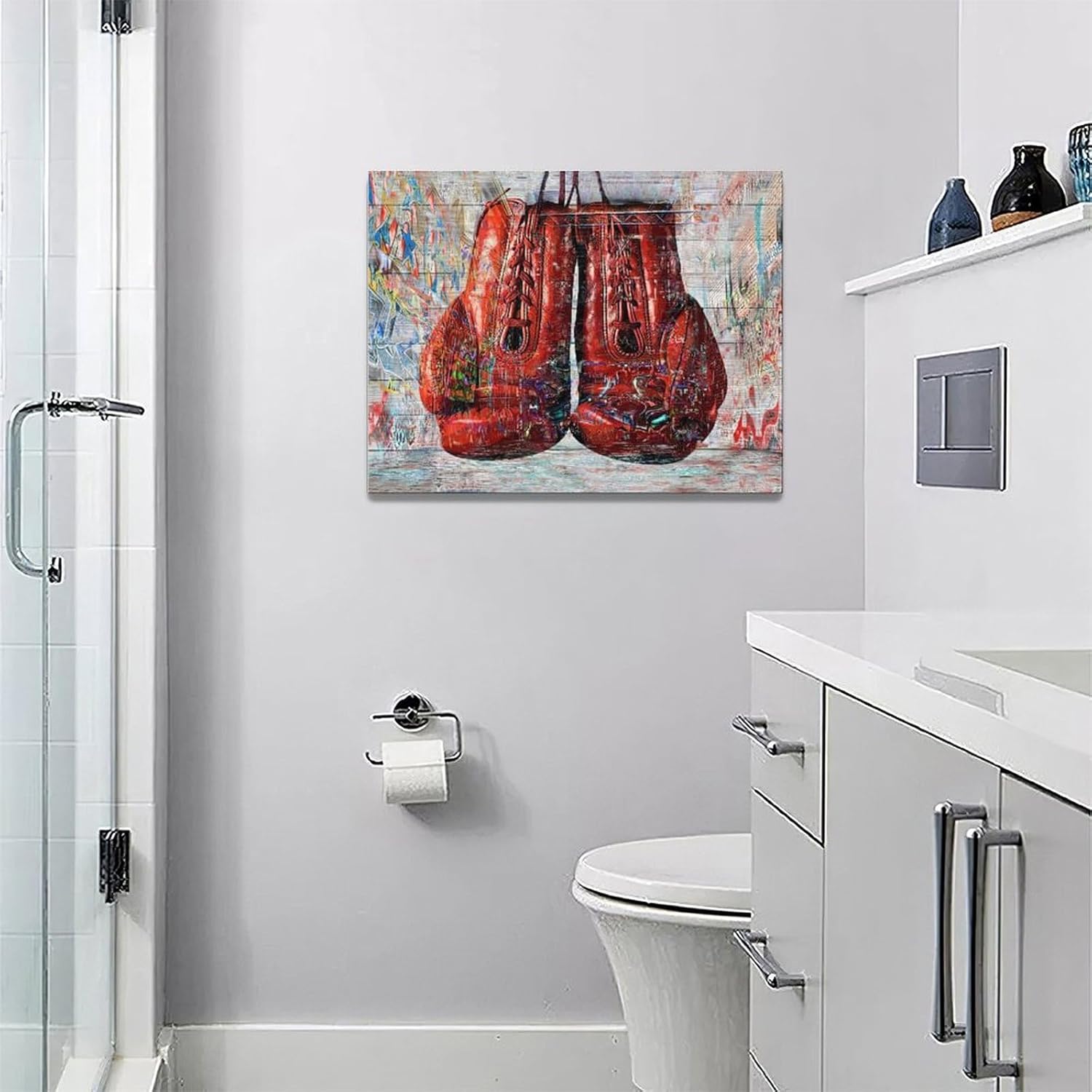 Quorin Banksy Graffiti Boxing Wall Art Red Boxing Gloves Pictures Gym Sport Wall Decor Canvas Print Painting Artwork for Gym Living Room Bedroom 12"x16"