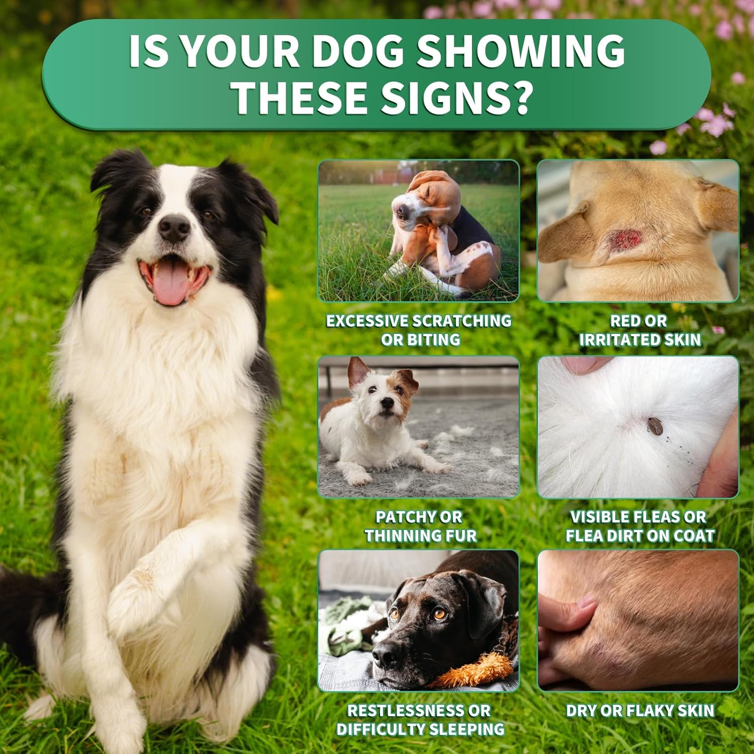 - Flea Prevention & Coat Nourishment: This dual-benefit formula helps dogs stay comfortable and confident. Designed to support natural defenses against fleas and ticks while also promoting skin hydration and coat shine—perfect for everyday wellness from nose to tail.