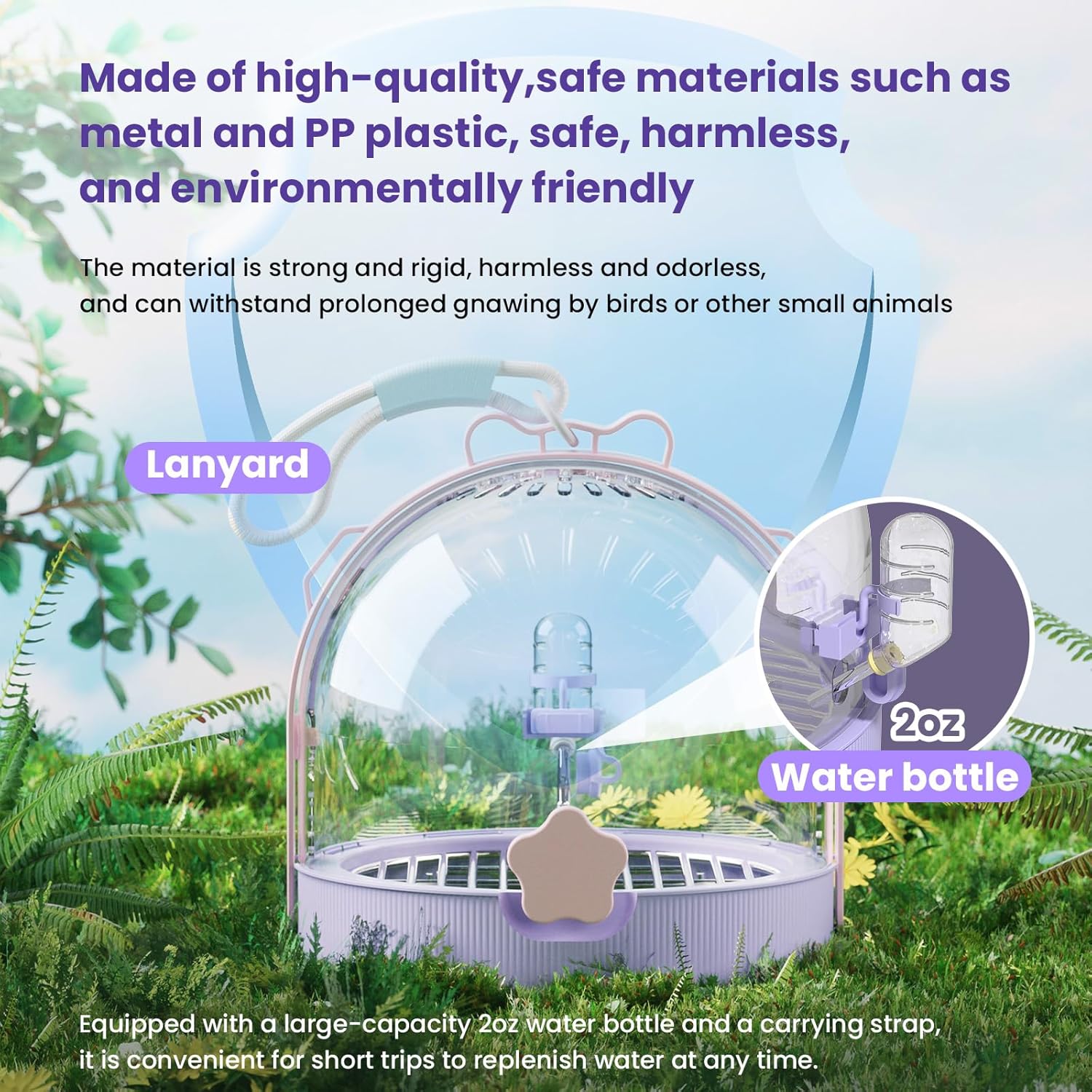 - 【Vivid shape and Quality Materials】Our travel carrier cage features a unique dome shape. Transparent all around, making every cute moment of your pet invisible. The cage is made of delicate PS material, stains is not easy to adhere, safe and durable, one wipe can remove stains. Every corner is polished smooth and flat. Safe and comfortable living environment for small pets, large angle opening and closing design makes cleaning easier.