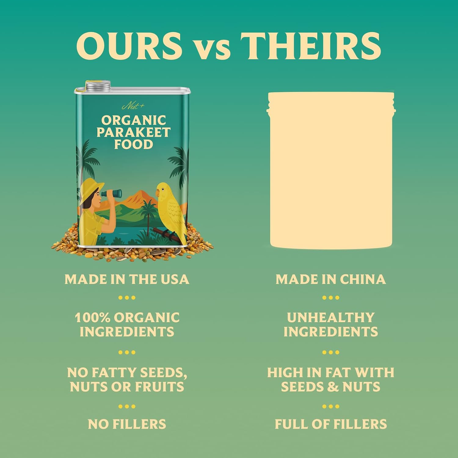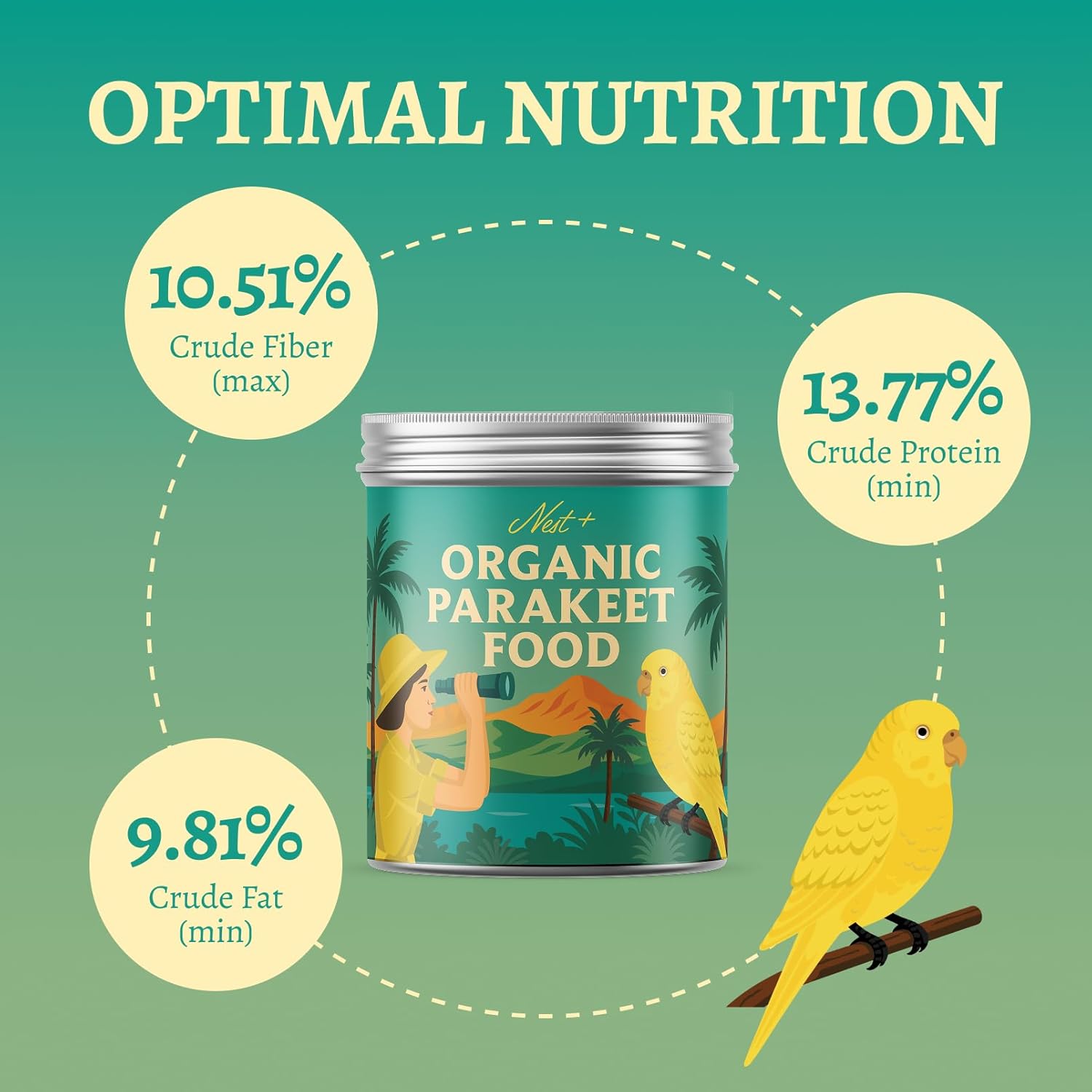 100% Organic Parakeet Food – Premium Bird Seed Mix with Oat Groats, Buckwheat, Amaranth, Super Veggies & Seeds – Reusable Tin + Stainless-Steel Scooper – Made in USA, Human Grade Ingredients (2lb)